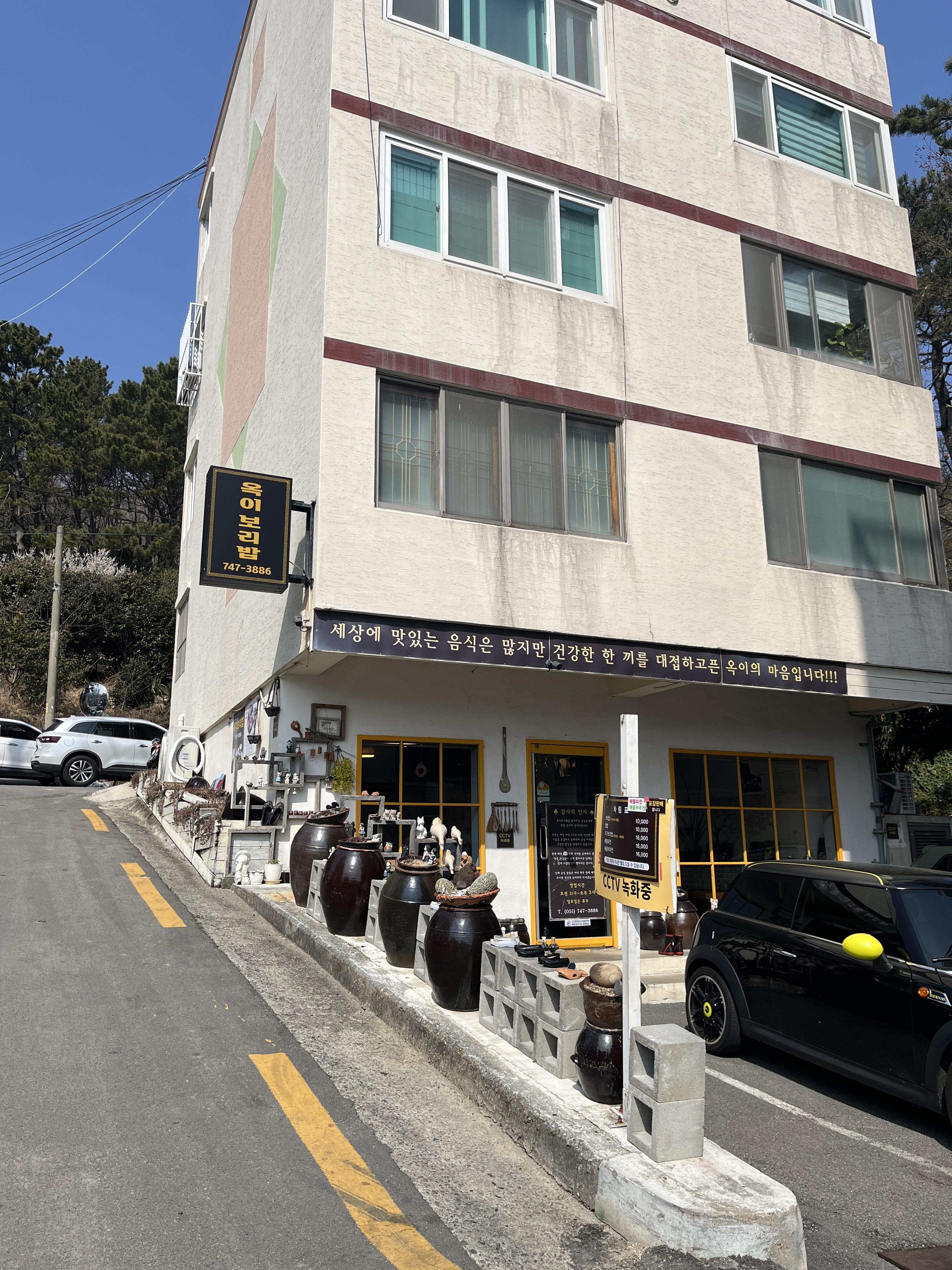 오늘은 건강한 밥상을 소개해 보려 한다. 점심만 먹을수 있는 청사포 옥이보리밥이다. 10가지 넘는 나물과 보리밥으로 맛있는 비빔밥을 먹을수 있는 곳이다. 물론 쌀밥도 가능하다. 늦은 점심으로 1시 30분쯤 도착하여 조기(생선)가 있는 조기보리밥을 먹으려 하였으나, 조기가 다 떨어져 그냥 보리밥을 먹게 되었다. 두명이 가서 파전까지는 시켜 먹지 못했으나 옆 테이블을 보니 파전도 아주 맛있게 보였다. 우선 식사 전에 나오는 구수한 보리밥 숭늉이 일품이었다. 쌀밥 숭늉이 아닌 보리밥 숭늉이어서 그런지 아주 구수하고 맛있었다.